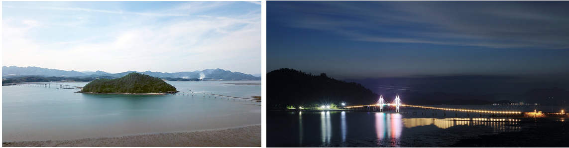 자동차가 다니지 않는 출렁다리가 양쪽으로 연결되어 걸어서 섬에 들어갈 수 있으며 섬에 도착하면 산과 바다를 감상하여 걸을 수 있는 2.5km의 생태탐방로가 조성되어있으며, 다양한 어종이 잡히는 복합낚시공원, 섬 정상에 있는 청자타워(높이 25m)에서 출발하여 해상을 나는 체험을 할 수 있는 친환경 레저시설인 짚트랙(L=973m), 바다를 가르는 제트보트 등 다양한 레저 체험을 즐길 수 있다.