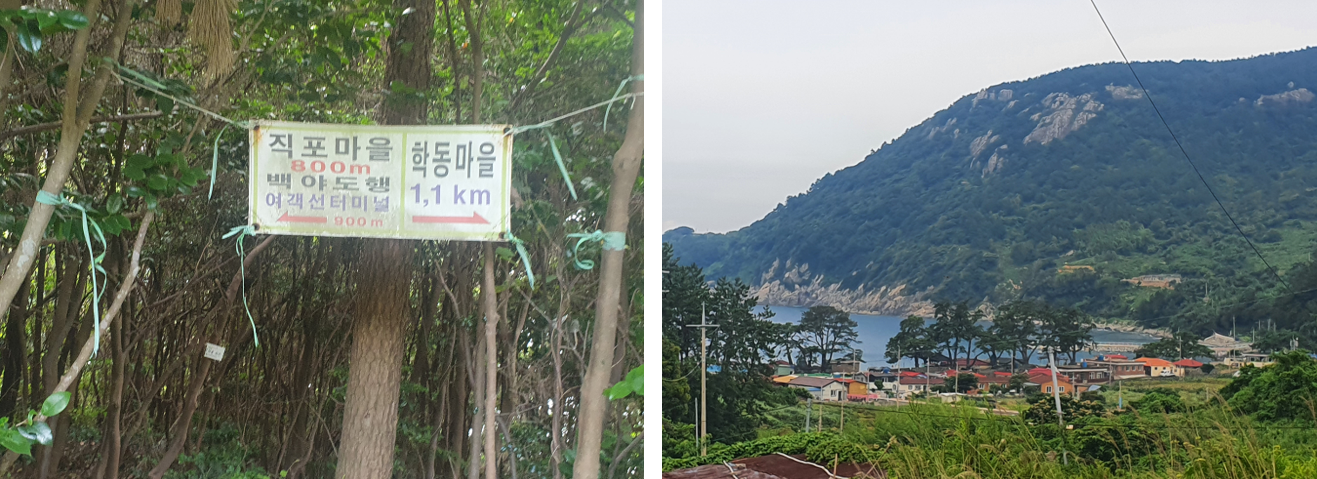 마트를 지나 조금 더 산 쪽으로 들어가면 비렁길 3코스 입구가 있어요.