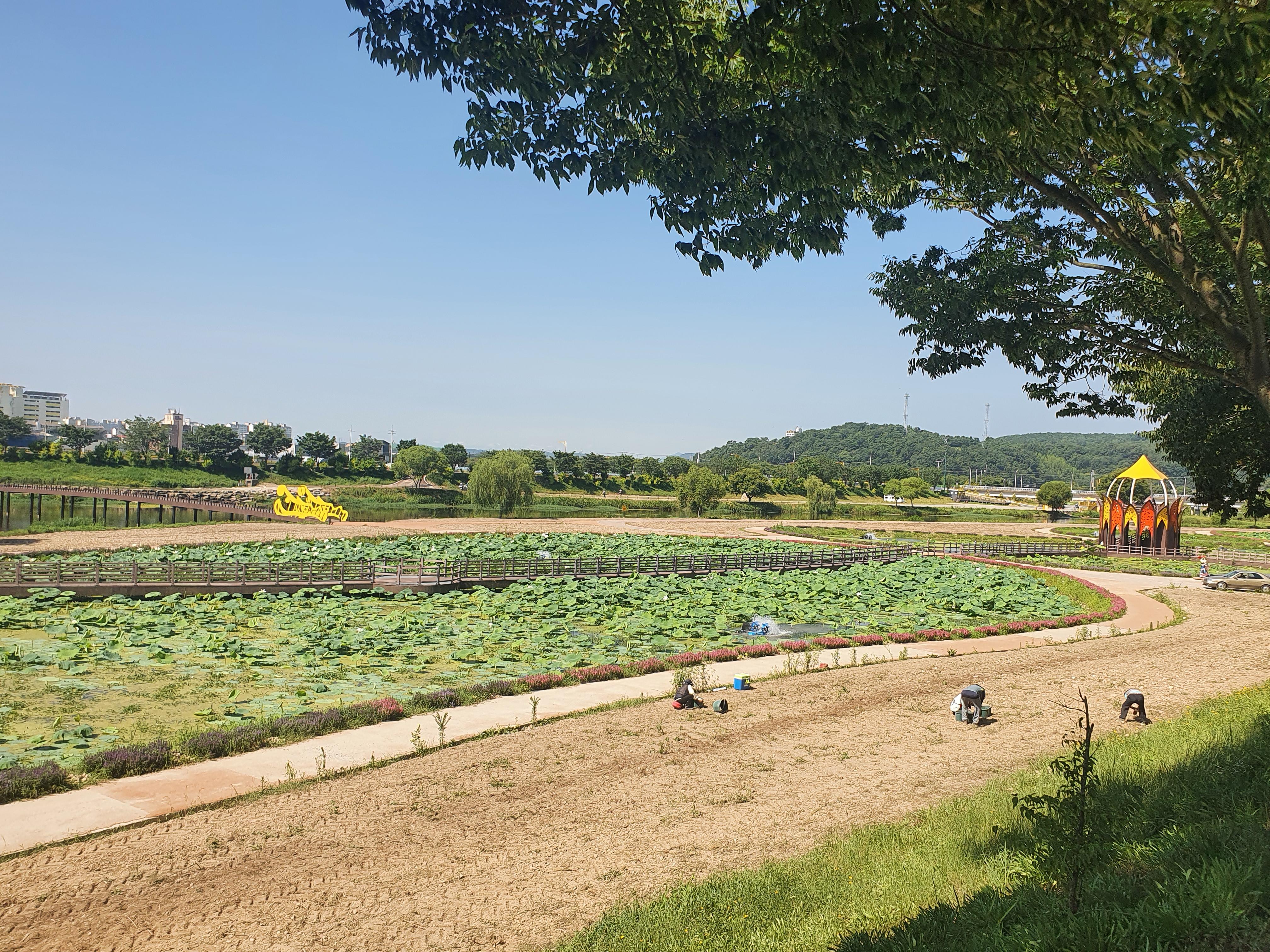 연꽃밭 한가운데로 난 길을 따라 구조물에 올라서면 넓은 정원의 모습을 한눈에 담을 수 있더라구요.