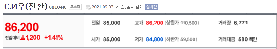 예를 들면 CJ 4우(전환)는 일정기간 이후에 CJ 보통주로 바뀔 수 있는 주식이라는 것이에요.