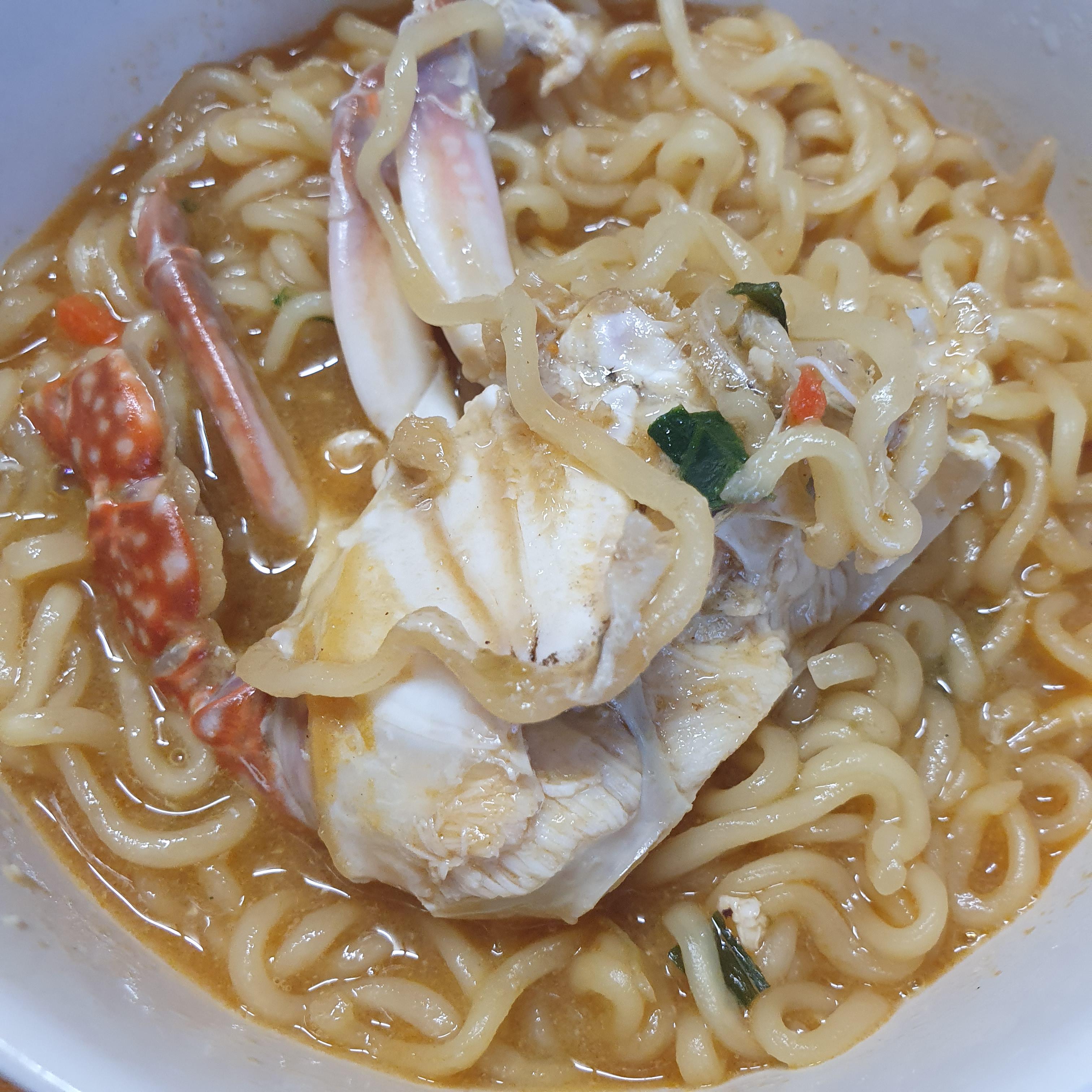 손질된 꽃게를 넣어서 라면도 끓여 먹었어요.