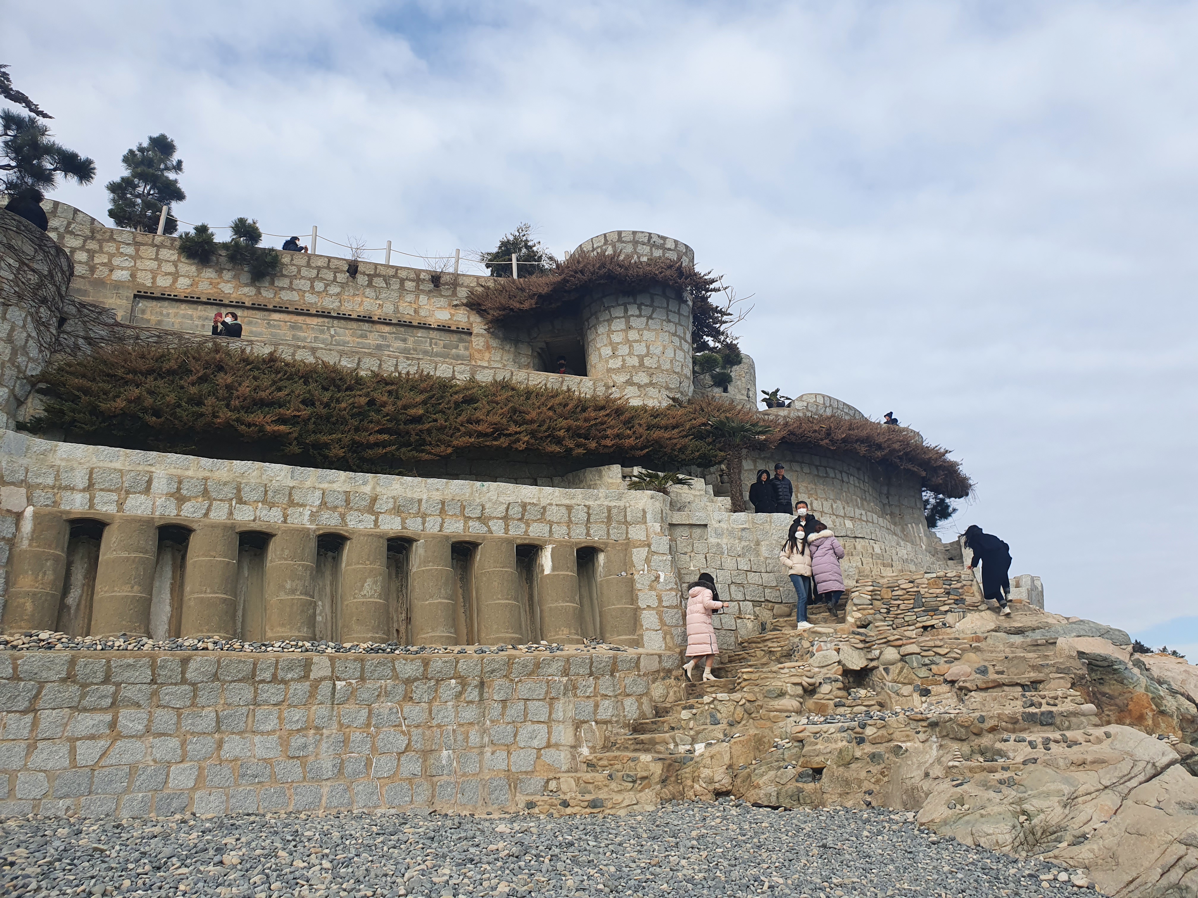 바닷가 근처에 네모반듯한 돌을 쌓고 시멘트로 메우길 반복한 것이 이제는 유럽의 중세시대를 연상케 하는 성이 됐다.