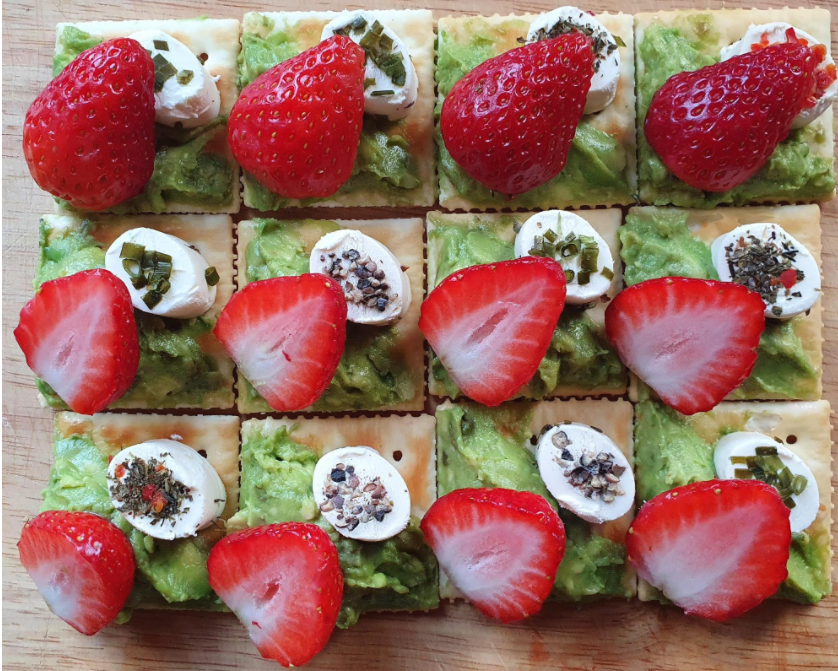딸기는 깨끗하게 씻어서 절반으로 잘라놓고, 아보카도는 그냥 자르기만 할 때도 있는데 오늘은 으깨 봤어요.
