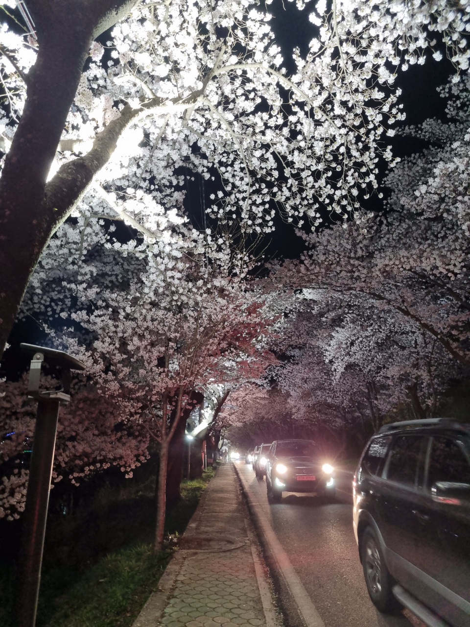 경남 하동 화개 십리벚꽃길은 낮에도 관광객이 많지만, 밤에 야간 조명을 밝혀서 밤에도 만만치 않아요.