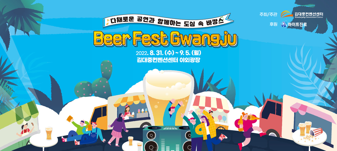 김대중컨벤션센터는 오는 31일부터 다음 달 5일까지 센터 야외광장에서 '2022 비어 페스트 광주'(Beer Fest Gwangju)를 연다고 합니다.