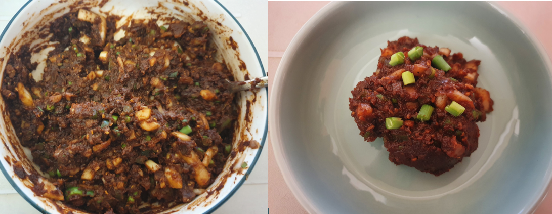 고추장, 된장, 마늘쫑, 양파, 청양고추, 참기름, 볶은 깨, 설탕을 넣고 섞어 주시면 끝입니다.