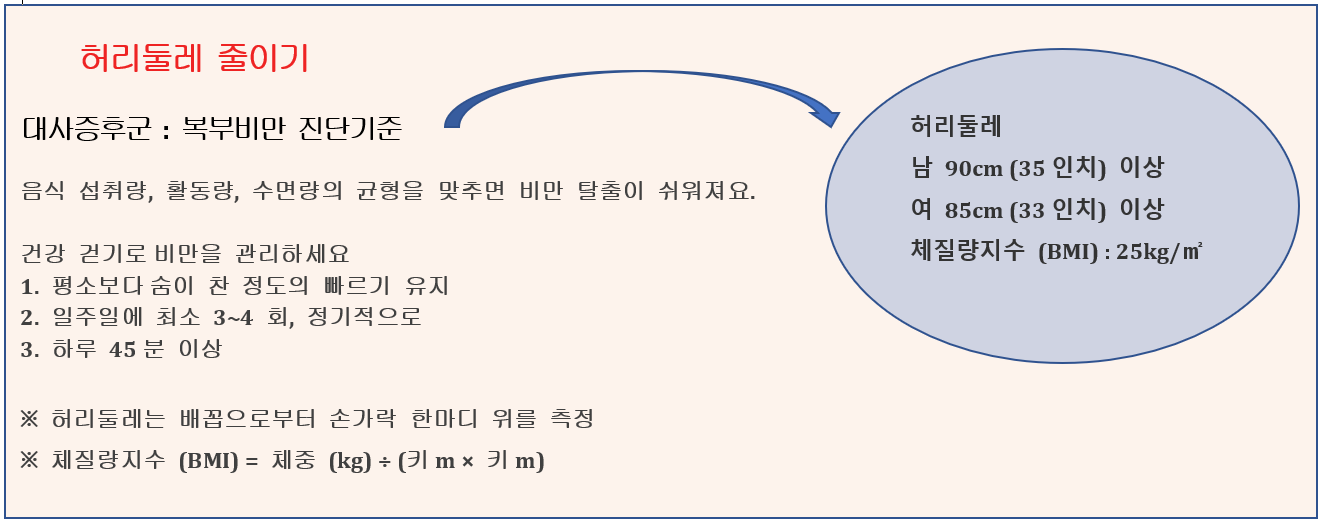 평생 건강을 위한 행복한 실천 대사증후군 위험요인별 관리 방법
