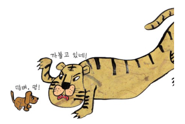 태어난 지 얼마 안 된 어린 강아지는 호랑이가 얼마나 무서운지 모르지요.